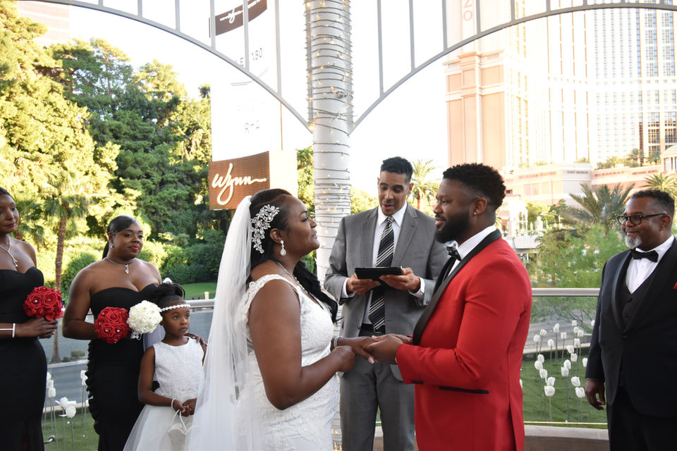 We meet at the sign. I take photos of the wedding couple and/or the wedding party. I can usually get at least 50 pictures for big wedding parties. Time is of the essence because there may be a line of people waiting but I try to shoot as many poses as I can. I have an Ipad handy for the pictures to be reviewed. After I confirm your satisfaction, ALL the pictures are sent via Airdrop through apple devices and/or emailed to you with a dropbox link available to be downloaded at your leisure. With Airdrop you get the pictures right away to share with family and friends on social media if you'd like. The process is quick, easy, and affordable. Most important of all is you leaving Las Vegas happy with amazing, high quality photos.